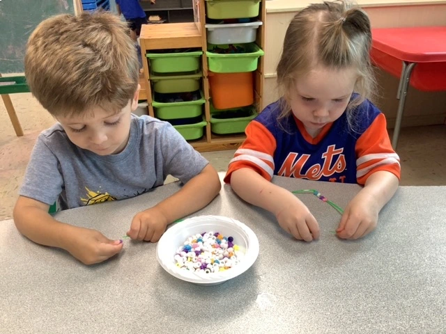 As your child starts to get ready for Kindergarten in our Pre-K PALS class they are learning in the areas of Fine Motor Skills, Reading Readiness, Math Readiness, Language/ Listening Development, Physical Development as well as many other skills. The teachers work with all of the children in all the areas but also with individual children in more specific areas where growth is needed. The morning circle time includes name recognition, birthday/age recognition, colors, shapes, letters, counting numbers 1-100, seasons, weather, calendar skills (the year, days of the week, months of the year, yesterday, today, tomorrow), USA presidents, solar system, USA Map, World Map and where we all live. We focus on and reward positive behavior with goal charts, Mr. Bear points, and of course, our Kindness Wreath. We learn through play every day during choice time in one of the centers such as Blocks, Literacy, Art, Easel, Table Tops, Puzzles, Music/Movement, Science, Sensory or Dramatic Play. The curriculum for this classroom includes letters, numbers, monthly themes/concepts, colors, and shapes. You can find the curriculum for this room posted on the parent board outside of the classroom. We also incorporate cooking activities as well as many theme/concept-related projects. We also send home optional Scholastic Reader homework a few times a month so you can take an active part in going over things with your child that we have done at school. We collect the homework and go over it as a class. We also have a show and tell once a month where the items must correspond with one or more of our monthly themes/concepts.