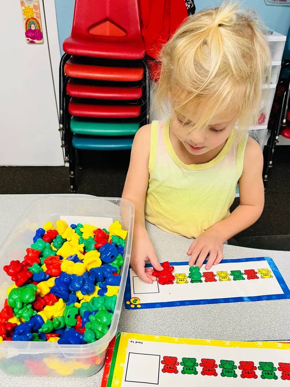 The children have Free Play every day. They are given choices within the different centers they want to play with. Our centers include Dramatic Play, Blocks, Library, and Puzzles. The curriculum for this classroom includes letters, numbers, monthly themes/concepts, colors, and shapes. You can find the curriculum for this room posted in the classroom.